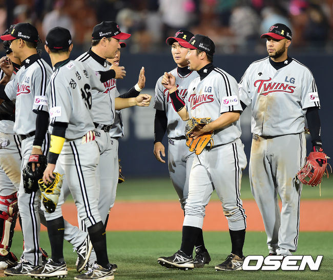 경기 종료 후 LG 선수들이 승리의 기쁨을 나누고 있다./sunday@osen.co.kr