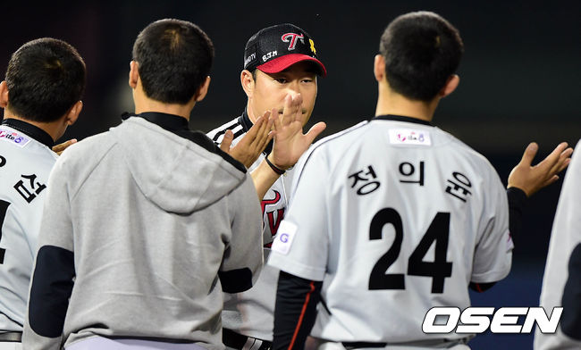 경기 종료 후 LG 봉중근이 동료들과 승리의 기쁨을 나누고 있다./sunday@osen.co.kr