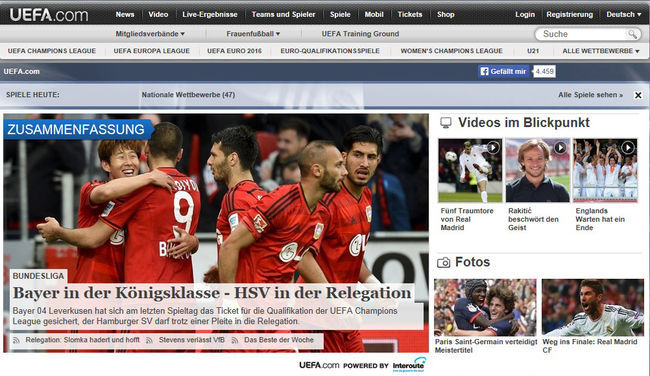 역전골을 터트린 손흥민(22, 레버쿠젠)이 유럽축구연맹(UEFA) 홈페이지 메인을 장식했다.