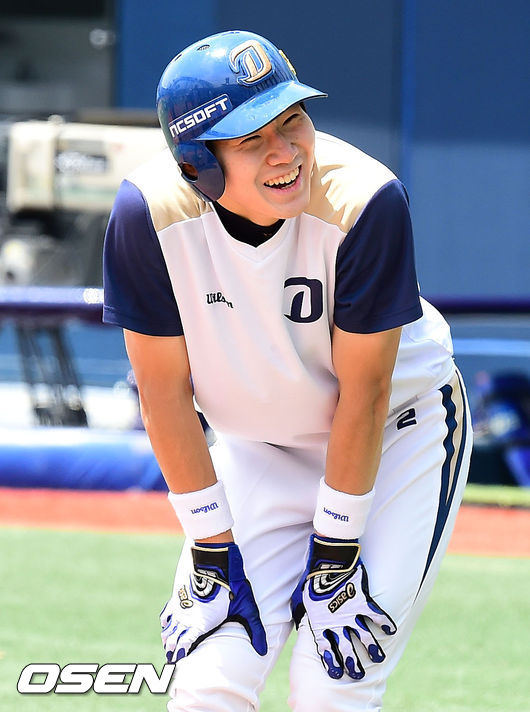 11일 오후 경남 마산구장에서 열린 '2014 한국야쿠르트 세븐 프로야구' NC 다이노스와 롯데 자이언츠의 경기에 앞서 타격훈련을 하던 NC 박민우가 미소짓고 있다.