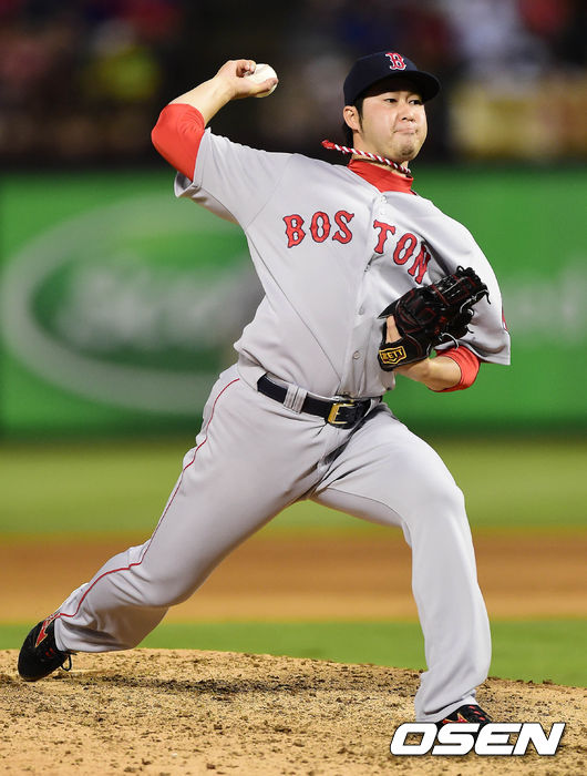 11일(이하 한국시각) 미국 텍사스주 알링턴 글로브 라이프 파크에서 열린 '2014 메이저리그' 텍사스 레인저스와 보스턴 레드삭스의 경기 8회말 마운드에 올라온 타자와 준이치가 역투하고 있다.