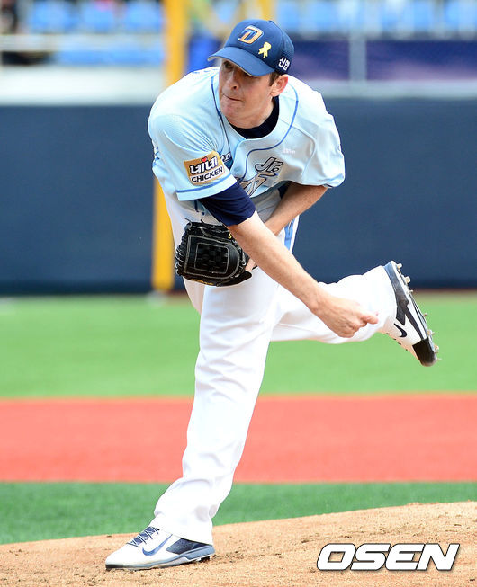 11일 오후 창원 마산구장에서 열린 '2014 한국야쿠르트 세븐 프로야구' NC 다이노스와 롯데 자이언츠의 경기, 1회초 NC 선발 찰리 쉬렉이 힘차게 공을 뿌리고 있다.