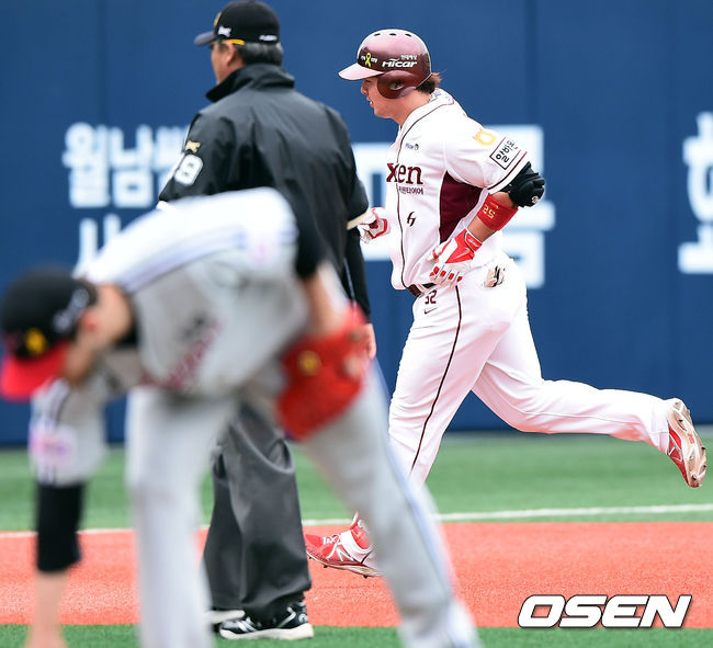 11일 오후 서울 목동구장에서 열린 '2014 한국야쿠르트 세븐 프로야구' 넥센 히어로즈와 LG 트윈스의 경기, 4회말 넥센 박병호가 솔로홈런을 날리고 베이스를 돌고 있다. 시즌 14호로 홈런 단독 1위.