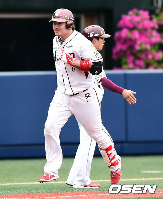 11일 오후 서울 목동구장에서 열린 '2014 한국야쿠르트 세븐 프로야구' 넥센 히어로즈와 LG 트윈스의 경기, 4회말 넥센 박병호가 솔로홈런을 날리고 베이스를 돌고 있다. 시즌 14호로 홈런 단독 1위.