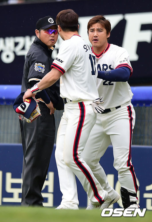 이영재 1루심-오재원,'날카로운 신경전
