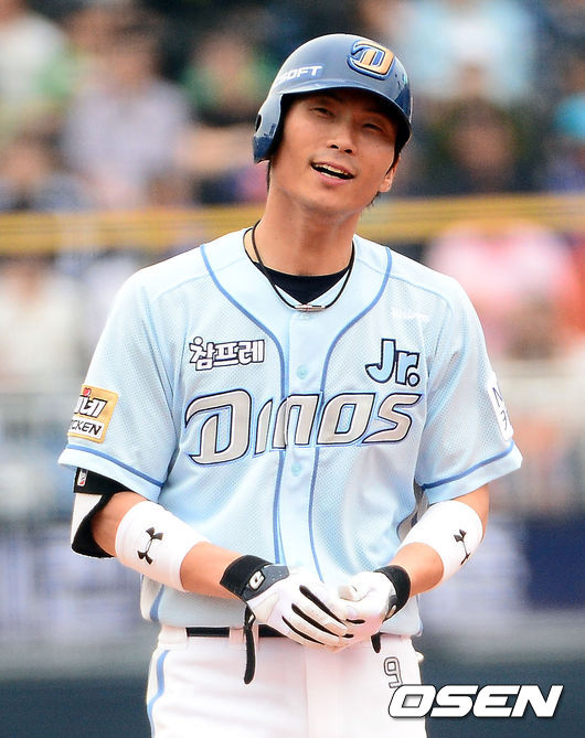 11일 오후 경남 창원 마산구장에서 열린 '2014 한국야쿠르트 세븐 프로야구' NC 다이노스와 롯데 자이언츠의 경기, 7회말 1사 주자없는상황에서 NC 김종호가 좌익수 앞에 떨어지는 안타를 날린 후 롯데 좌익수 실책으로 2루까지 진루하며 미소짓고 있다.