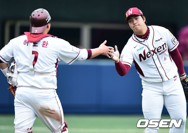 경기종료 후 넥센 조상우 투수와 허도환 포수가 하이파이브를 하고 있다../soul1014@osen.co.kr