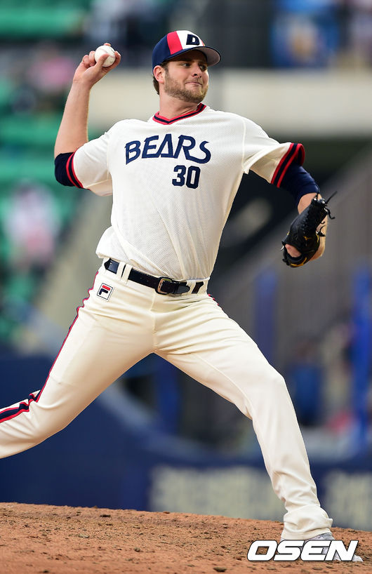 9회초 두산 볼스테드가 마운드에 올라 역투하고 있다.