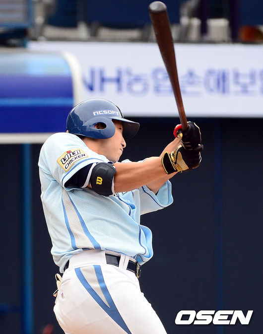 11일 오후 경남 창원 마산구장에서 열린 '2014 한국야쿠르트 세븐 프로야구' NC 다이노스와 롯데 자이언츠의 경기, 8회말 2사 1,3루 NC 나성범이 스리런 홈런을 날리고 있다.