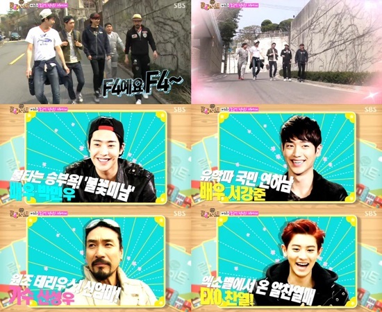 맑은 봄날 한적한 주택가를 걷는 이들의 모습은 마치 화보같은 모습이었다. 이에 조세호는 "F4다"라며 즉석에서 별명을 붙였다.