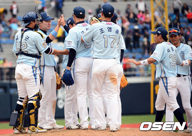 경기종료 후, 승리한 NC 선수들이 기쁨의 하이파이브를 나누고 있다. /ouxou@osen.co.kr