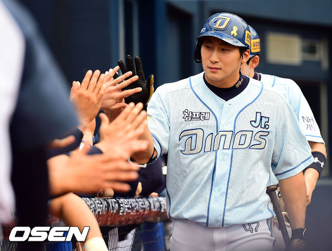 8회말 2사 1,3루 스리런 홈런을 날린 NC 나성범이 덕아웃에서 동료들고 하이파이브를 나누고 있다 . /ouxou@osen.co.kr