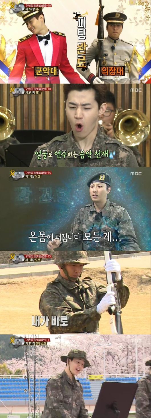 11일 오후 방송된 MBC 예능프로그램 '일밤-진짜사나이'(이하 '진짜사나이')에서는 각각 의장대와 군악대를 들어가 자신의 장기를 마음껏 발휘하는 아빠와 아들, 박건형, 헨리의 모습이 그려졌다.