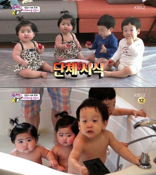 '슈퍼맨이 돌아왔다'에 깜찍한 두 천사가 서언이와 서준이를 만났습니다. 과거 뭇 남성들의 마음을 사로잡았던 S.E.S 슈의 깜찍한 쌍둥이 딸 라희와 라율이가 그 주인공입니다. 두 쌍둥이, 일명 '쌍쌍둥이'가 조우하니 귀여움도 4배로 껑충 뛰어 올랐습니다.