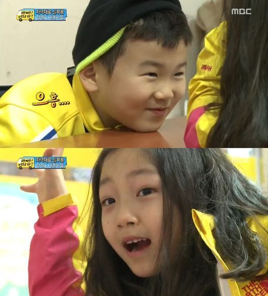 오빠이기 때문일까요? 윤후는 딸을 배웅하는 정웅인에게 "세윤이 잘 데려오겠다"라고 인사를 하는가하면 "오빠가 잘 챙겨줄게"라고 세윤이를 다독였습니다. 이어 시장으로 가는 차 안에서 두 아이는 화기애애 장난을 치며 친해졌습니다. 잘 웃고 유쾌한 세윤이는 윤후와 꽤 잘 맞는 짝꿍이었어요. 윤후는 첫 장보기에 "떨려"라고 긴장하는 세윤이에게 "오빠가 다 해줄게"라고 다시 한 번 오빠다운 듬직함을 발휘했습니다.