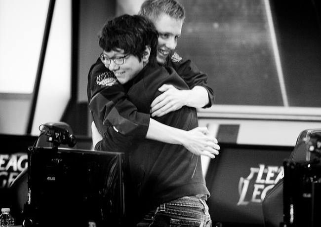 팀 아이스는 11일(이하 한국시간) 프랑스 파리 르 제니스 아레나에서 열린 'LOL 올스타 2014 '(이하 '롤 올스타전') 올스타 챌린지 1대1, 2대2 모드에서 승리를 따냈다. 홍민기는 팀 우승 후 같은 팀인 '프로겐' 헨릭 한센과 감격의 포옹을 나누고 있다.