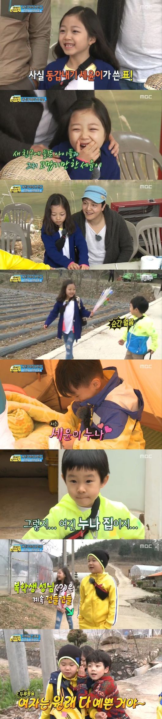 민율 역시 누나의 마음에 들기 위해 최선을 다했다. 그는 세윤에게 끊임없이 이야기를 걸며 귀여운 관심을 드러냈고 누나는 그의 앙증맞은 모습에 "너무 귀엽다"를 연발했다. 지난 방송에서 ‘지아바라기’였던 류진의 아들 찬형 또한 변심(?)한 모습으로 세윤에게 다가갔다. 숙소에 도착하자 마자 세윤을 향해 달려간 그는 형인 윤후에게 "세윤이 이쁘지 않냐"고 귓속말을 했고 윤후와 함께 시장보기에 나선 세윤이에게 "잘 다녀와. 내가 걱정된단 말이야"라고 마음을 표현해 웃음을 자아냈다.
