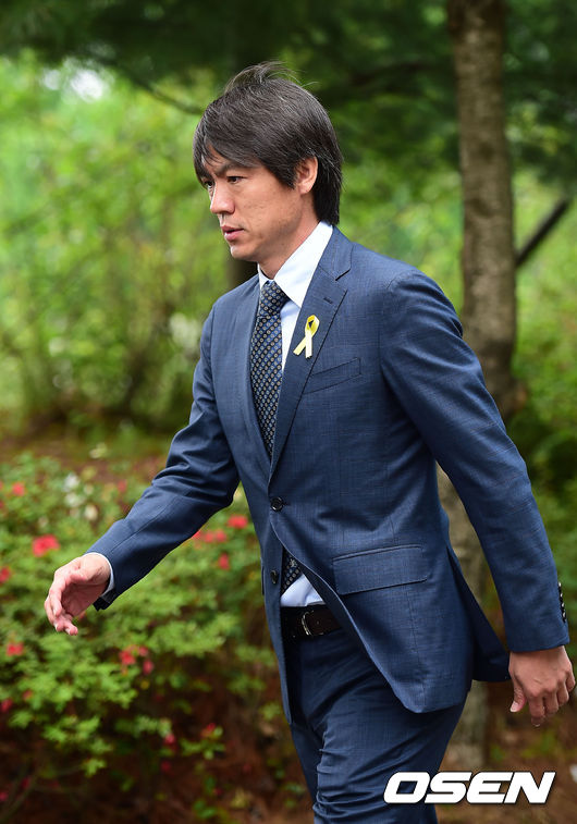 홍명보 감독이 파주 NFC로 들어서고 있다.