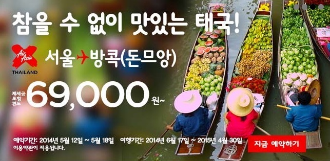 에어아시아의 이번 프로모션은 제세금을 포함한 편도요금이며, 한정 수량을 선착순에 판매할 예정이다. 태국 방콕행 비행기를 편도 6만 9000원에 구매할 수 있는 쉽지 않은 기회에 네티즌들의 관심이 뜨겁다.