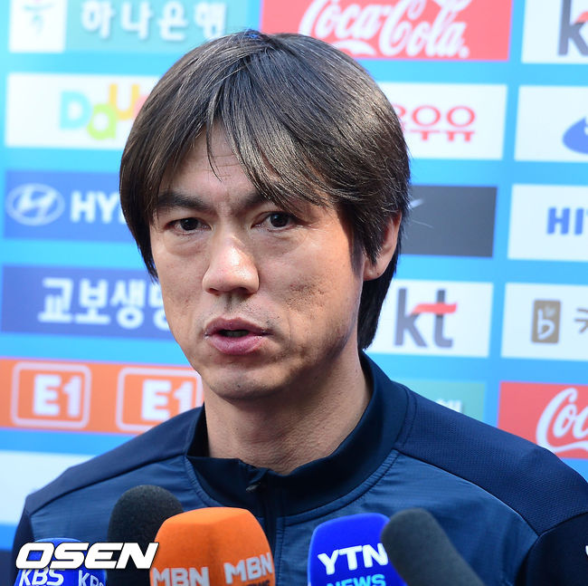 훈련 전 홍명보 감독이 인터뷰를 하고 있다.