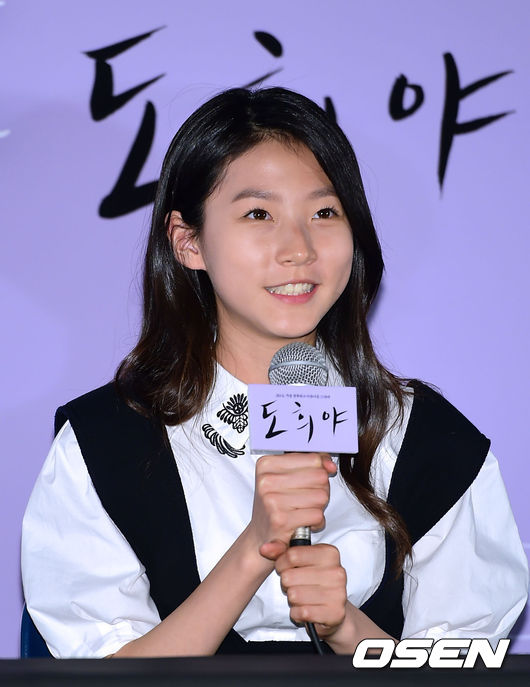 12일 오후 서울 왕십리CGV에서 진행된 영화 '도희야' 언론시사회에서 배우 김새론이 소감을 말하고 있다.