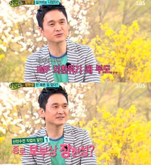 장현성은 12일 오후 방송된 SBS 예능프로그램 '힐링캠프-기쁘지 아니한가'에서 "아버지가 IMF 때 사업 부도가 났다"며 종로 일대에서 물건을 팔았던 당시를 회상했다.