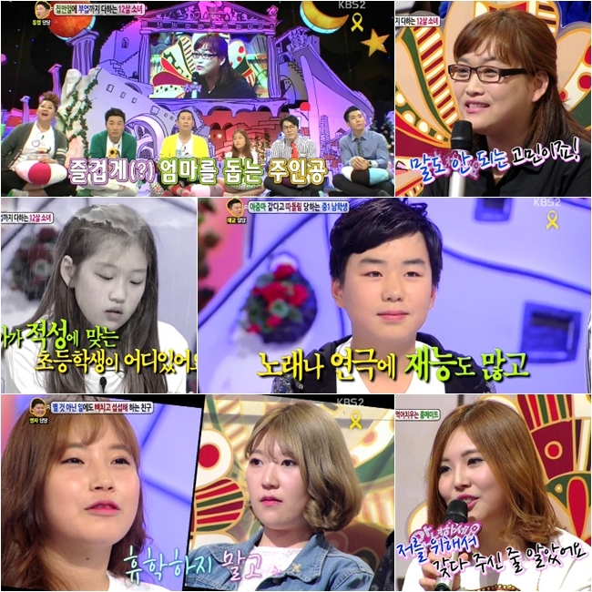 가장 먼저 등장한 12세 소녀는 “집안일도 힘든데 두 동생까지 봐야 해서 많이 힘들다”며 “16개월 13kg인 막냇동생을 안아줄 때 무거워서 허리가 아프다”고 고백해 좌중을 놀라게 했다. 무엇보다 가장 힘이 드는 건 이 같은 솔선수범에도 엄마의 칭찬이 없는데다, 이름이 아닌 ‘야’라고 불리는 것.