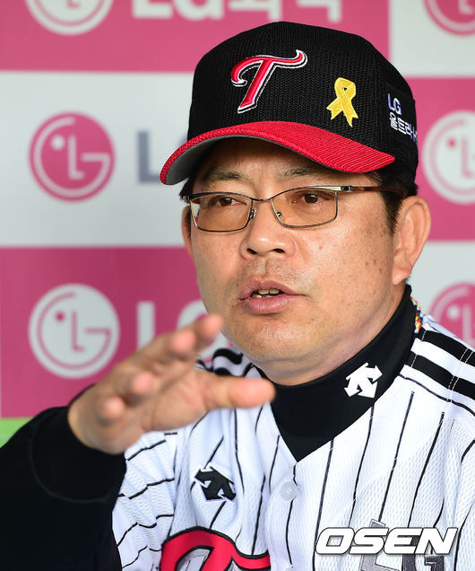 경기에 앞서 LG 양상문 감독이 취재진과 이야기를 나누고 있다.