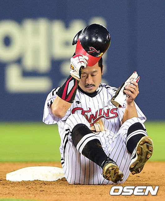 4회말 2사 1루에서 롯데 옥스프링의 견제에 걸린 LG 1루주자 이병규가 태그아웃으로 물러나며 아쉬워하고 있다.
