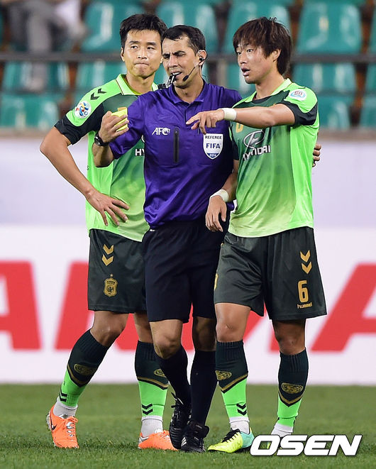 13일 오후 경북 포항시 포항스틸야드에서 진행된 2014 AFC 챔피언스리그 16강 2차전 포항과 전북의 경기, 전반 전북 이동국이 최보경의 퇴장 판정에 아쉬워하고 있다.
