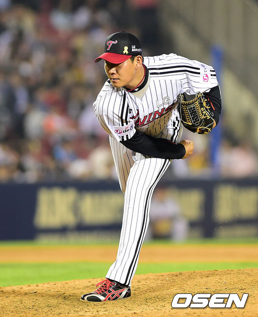 8회초 무사에서 LG 정찬헌이 힘차게 공을 던지고 있다.