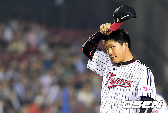 8회초 1사 1,2루 LG 정찬헌이 마운드를 내려가고 있다.