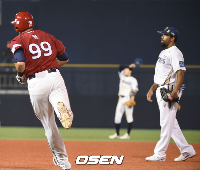 13일 오후 창원시 마산구장에서 열린 '2014 한국야쿠르트 세븐 프로야구' NC 다이노스와 KIA 타이거즈 경기, 8회초 1사 2,3루 필이 동점 스리런 홈런을 날리고 그라운드를 돌고 있다.