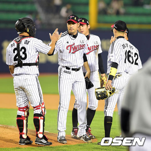 경기 종료 후 LG 선수들이 승리의 기쁨을 나누고 있다./sunday@osen.co.kr