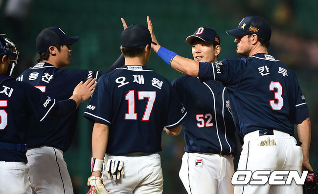 승리를 거둔 두산 선수들이 기뻐하고 있다./youngrae@osen.co.kr