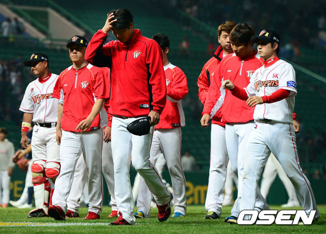 경기에서 패한 SK 선수들이 그라운드를 나서고 있다./youngrae@osen.co.kr