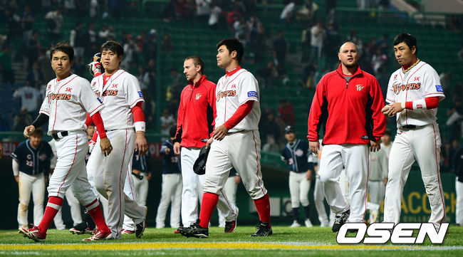 경기에서 패한 SK 선수들이 그라운드를 나서고 있다./youngrae@osen.co.kr