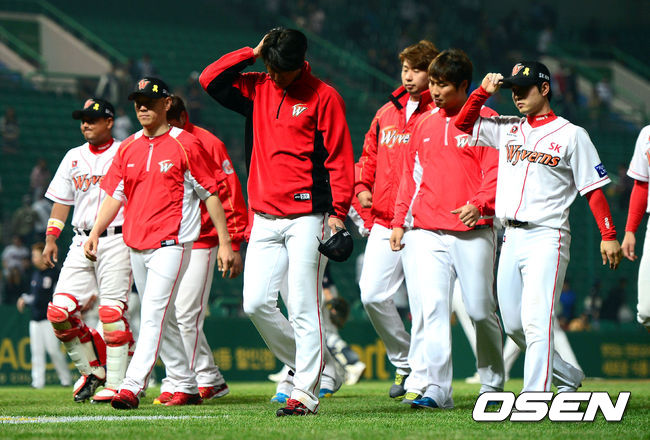 경기에서 패한 SK 선수들이 그라운드를 나서고 있다./youngrae@osen.co.kr