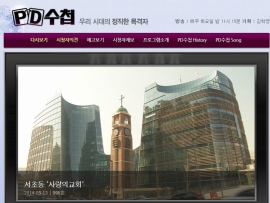 13일 밤 방송된 MBC 'PD수첩'에서는 서울시 서초구에 위치한 사랑의 교회의 내부 분쟁등 각종 의혹등이 소개됐다.