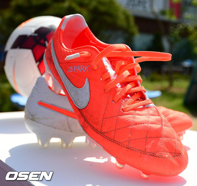 박지성 기자회견,'박지성의 이니셜이 박힌 축구화'