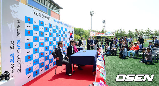 박지성은 아버지 박성종 씨와 어머니 장명자 씨와 함께 자리했다. 사회를 맡은 박문성 축구 해설위원도 아쉬움을 가득 안고 시작했다.