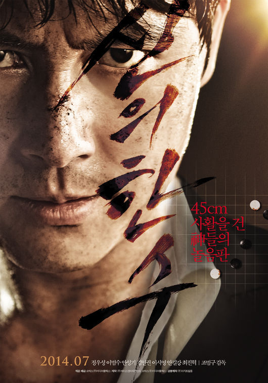 더불어 정우성의 얼굴 위로 그려진 검붉은 색의 타이틀은 앞으로 펼쳐질 치열한 한 수 전쟁을 예고하며 “45cm 사활을 건 神들의 놀음판”이라는 카피는 바둑과 범죄액션 장르가 만나 어떠한 시너지를 발휘할지 흥미를 자극하고 한다.