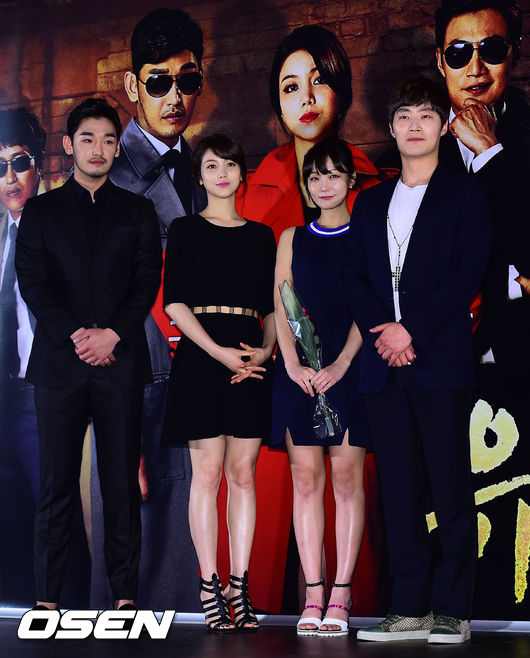 14일 오후 서울 동대문 메가박스에서 진행된 JTBC 드라마 '유나의 거리' 제작발표회 참석한 강신효 김옥빈 신소율 이희준이 포토타임을 갖고 있다.