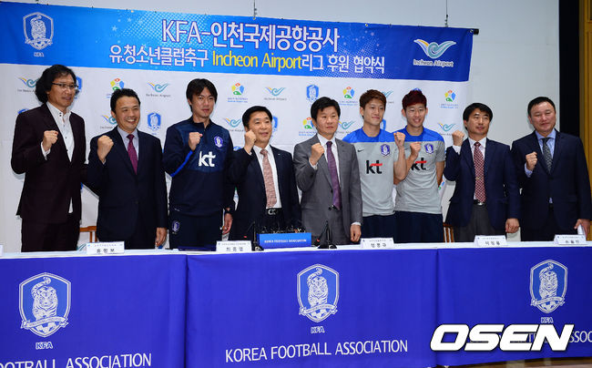 14일 오후 경기도 파주시 파주 NFC(대표팀 트레이닝센터)에서 브라질 월드컵에서 사상 첫 원정 8강에 도전하는 축구 국가대표팀이 훈련 전 KFA-인천국제공항공사 후원 협약식이 진행되고 있다..