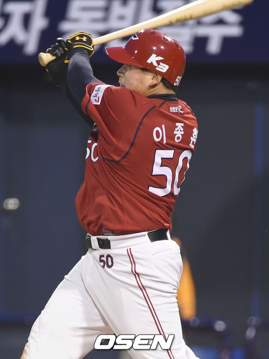 14일 오후 창원시 마산구장에서 열린 '2014 한국야쿠르트 세븐 프로야구' NC 다이노스와 KIA 타이거즈 경기,5회초 2사 2,3루 이종환 동점 적시타를 날리고 있다.