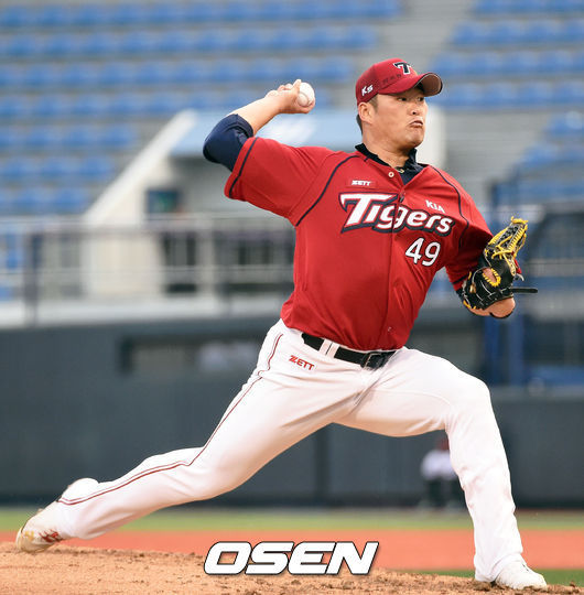 KIA 타이거즈 우완 김진우(31)가 시즌 첫 등판에서 아쉬움 남겼다. 구위는 좋았지만 제구에 어려움을 겪었다.