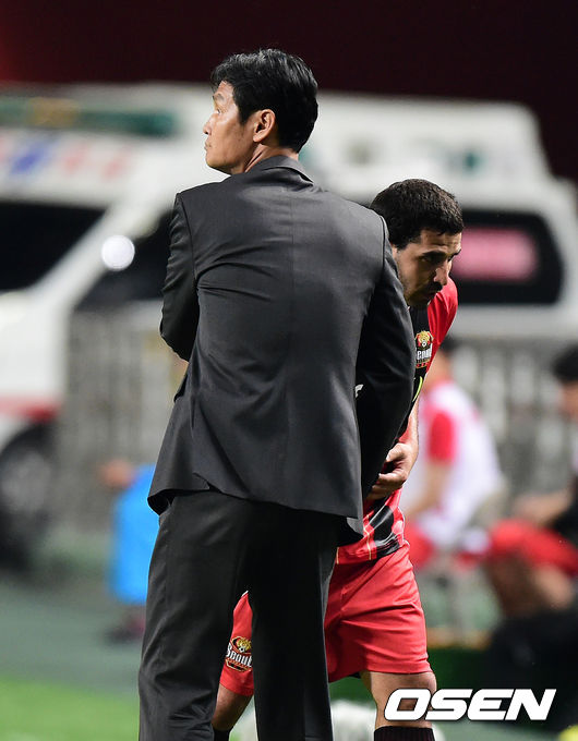 후반 FC서울 최용수 감독이 교체된 에스쿠데로를 격려하고 있다. /jpnews@osen.co.kr