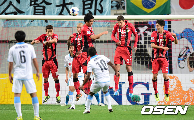 후반 FC서울 선수들이 가와사키 헤나투의 프리킥을 몸을 날리고 있다. /jpnews@osen.co.kr