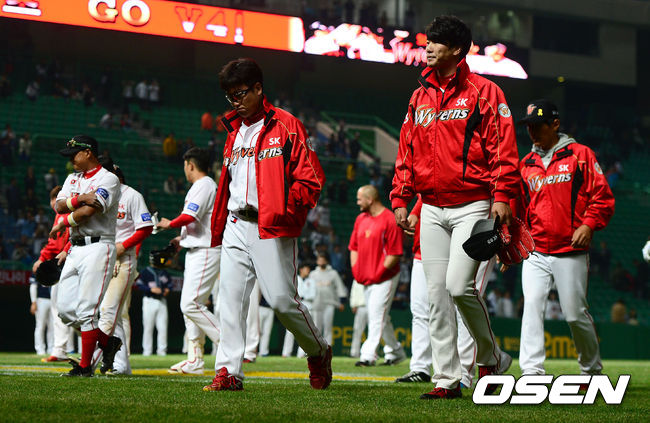 경기에서 패한 SK 선수들이 그라운드를 나서고 있다./youngrae@osen.co.kr