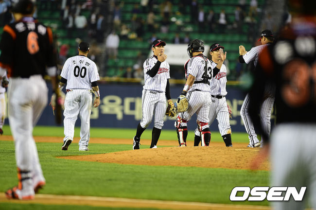 경기 종료 후 LG 선수들이 마운드에서 하이파이브를 나누고 있다./dreamer@osen.co.kr